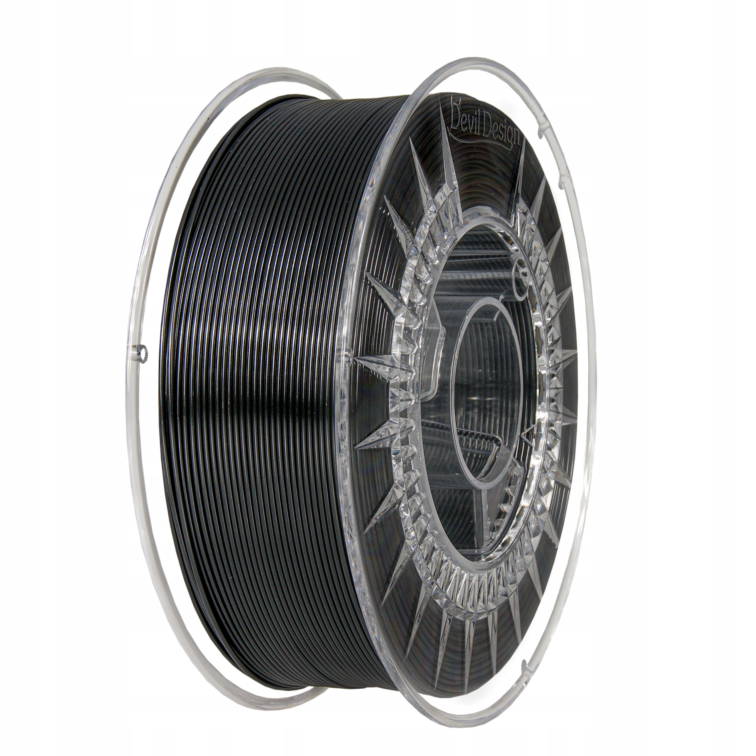 Filament PET-G marki Devil Design to wysokiej jakości termoplastyczny polimer z grupy poliestrów, wykorzystywany do druku 3D w technologii FFF. Włókno nawinięte jest na przezroczystą szpulę i zapakowane próżniowo z pochłaniaczem wilgoci, co zapewnia jego świeżość i gotowość do druku.