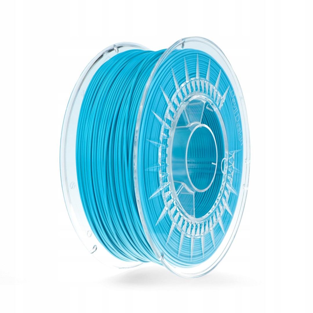 Filament PET-G marki Devil Design to wysokiej jakości termoplastyczny polimer z grupy poliestrów, wykorzystywany do druku 3D w technologii FFF. Włókno nawinięte jest na przezroczystą szpulę i zapakowane próżniowo z pochłaniaczem wilgoci, co zapewnia jego świeżość i gotowość do druku.