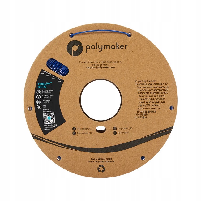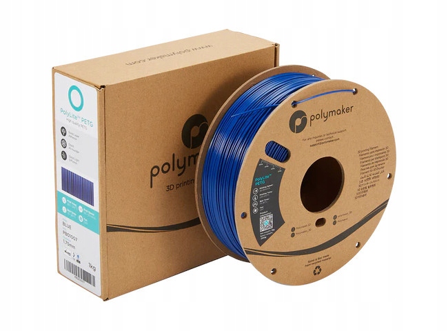 Filament PolyLite PETG firmy Polymaker to materiał o zrównoważonych właściwościach mechanicznych i bardzo różnorodnym zastosowaniu. Cechuje go odporność na uszkodzenia i wysoka wytrzymałość temperaturowa. Na tekturowej szpuli znajduje się 1 kg filamentu w kolorze iebieskim, a jego średnica wynosi 1,75 mm.