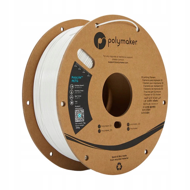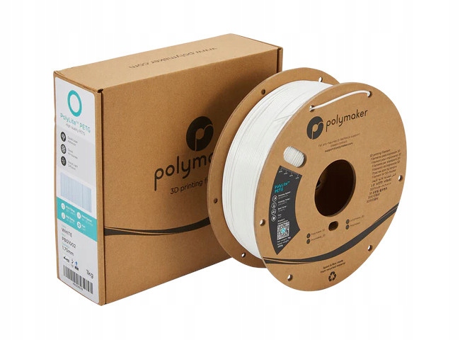 Filament PolyLite PETG firmy Polymaker to materiał o zrównoważonych właściwościach mechanicznych i bardzo różnorodnym zastosowaniu. Cechuje go odporność na uszkodzenia i wysoka wytrzymałość temperaturowa. Na tekturowej szpuli znajduje się 1 kg filamentu w kolorze iałym, a jego średnica wynosi 1,75 mm.