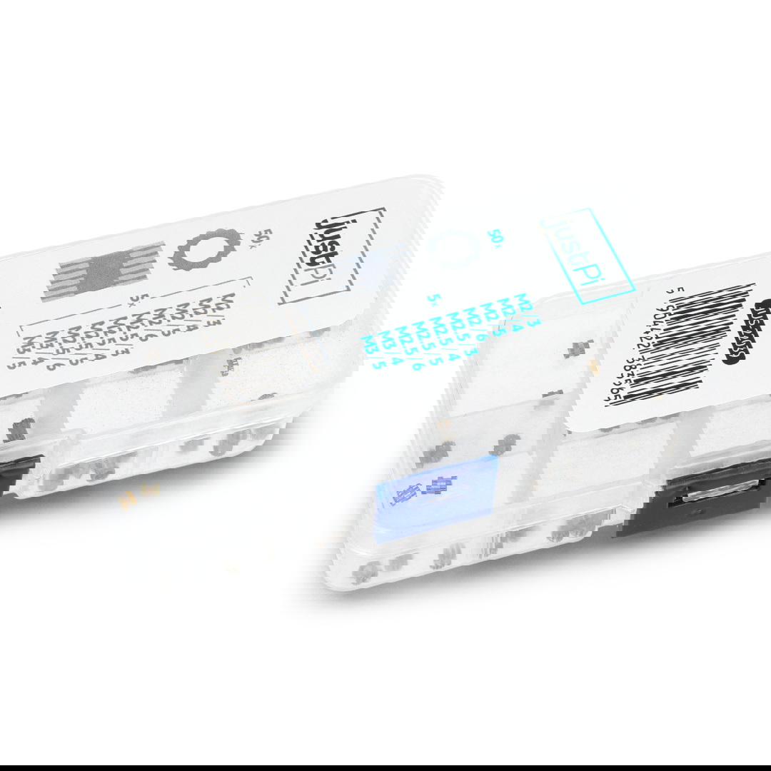Zestaw 50 mosiężnych gwintów w różnych rozmiarach przeznaczonych do osadzania w gotowych modelach 3D. Rozwiązanie to pozwala m.in. łatwo łączyć ze sobą poszczególne wydruki. Gwinty zostały umieszczone w organizerze ułatwiającym przechowywanie.