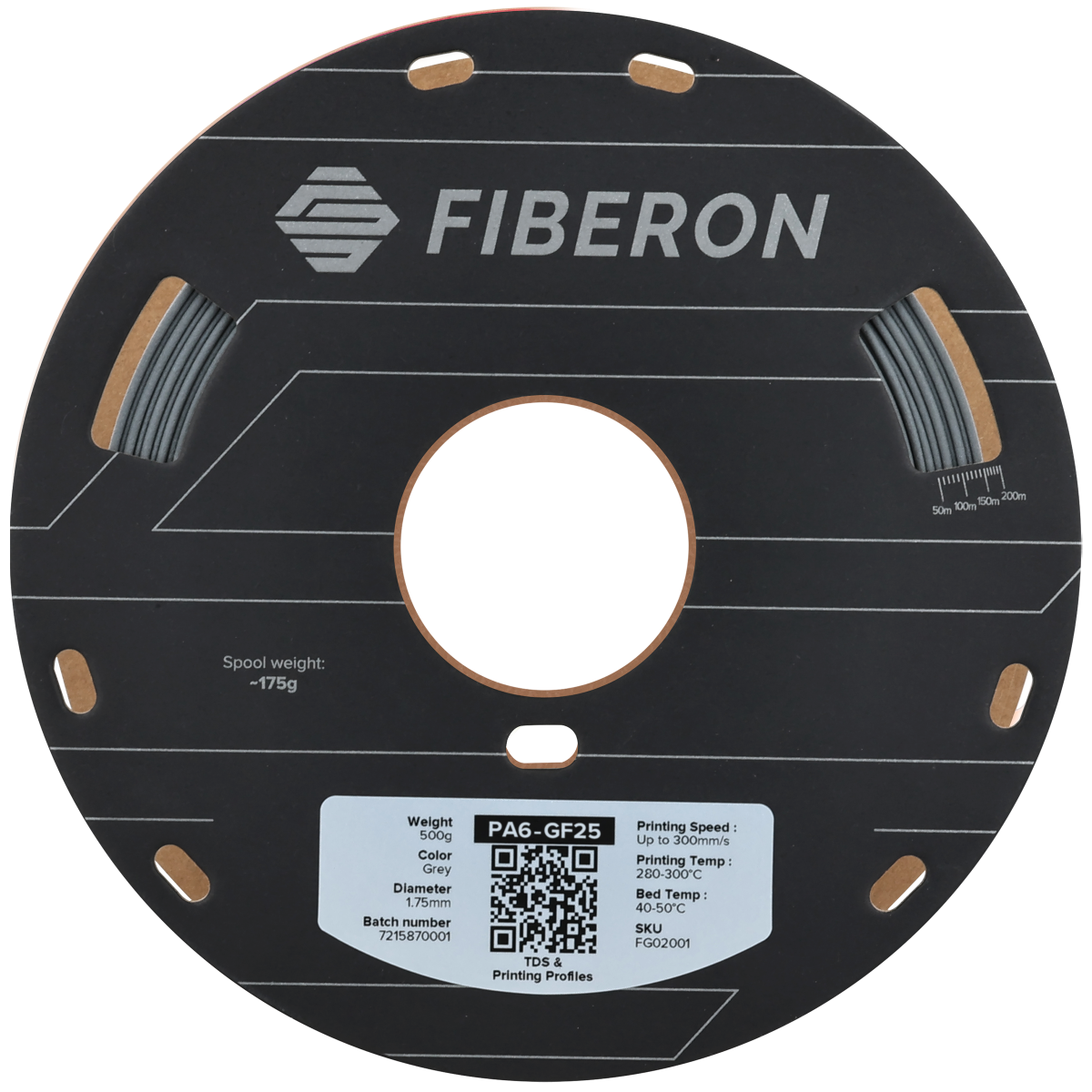 Fiberon™ PA6-GF25 to profesjonalny filament do druku 3D oparty na Nylonie 6, wzmocniony w 25% włóknem szklanym. Zapewnia doskonałe właściwości mechaniczne i termiczne bez kompromisów w adhezji warstw, co czyni go idealnym materiałem do wymagających zastosowań inżynieryjnych.