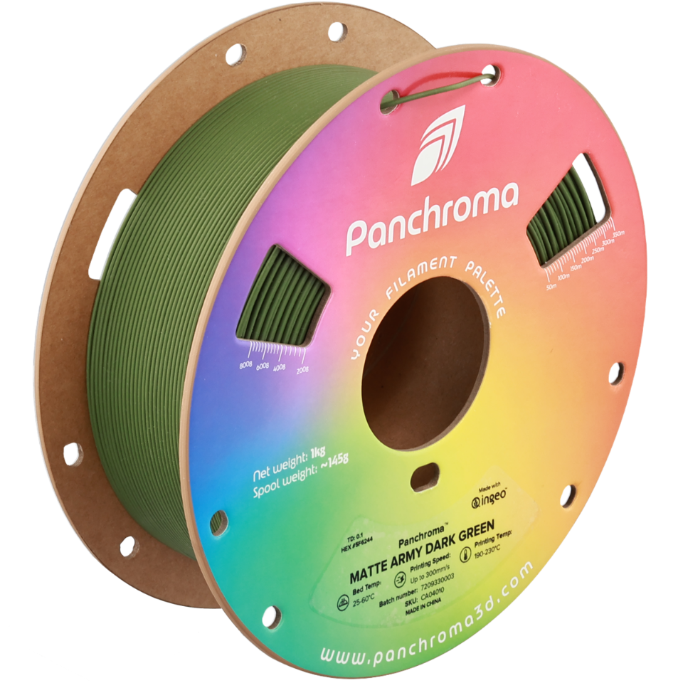 Panchroma™ Matte to nowej generacji filament do druku 3D oparty na bioplastiku, zaprojektowany z myślą o najwyższej łatwości użycia, jakości wydruków, szybkości oraz niezawodności.
