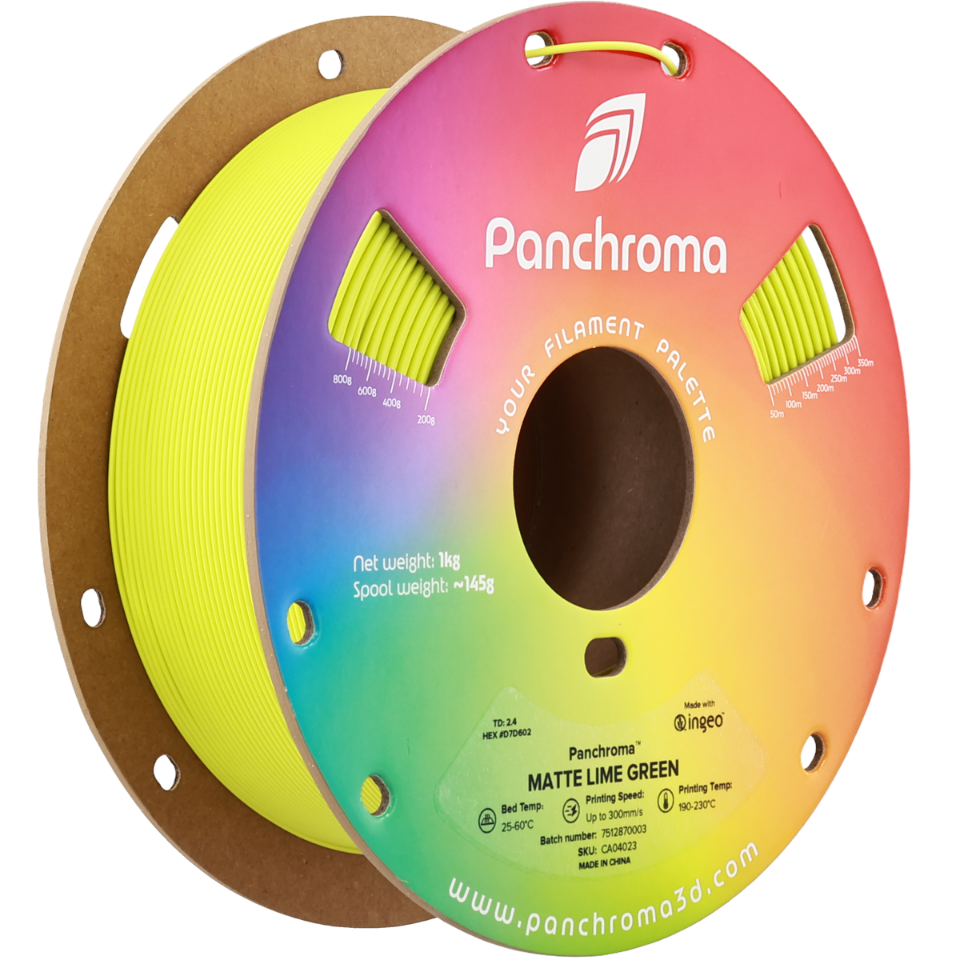 Panchroma™ Matte to nowej generacji filament do druku 3D oparty na bioplastiku, zaprojektowany z myślą o najwyższej łatwości użycia, jakości wydruków, szybkości oraz niezawodności.