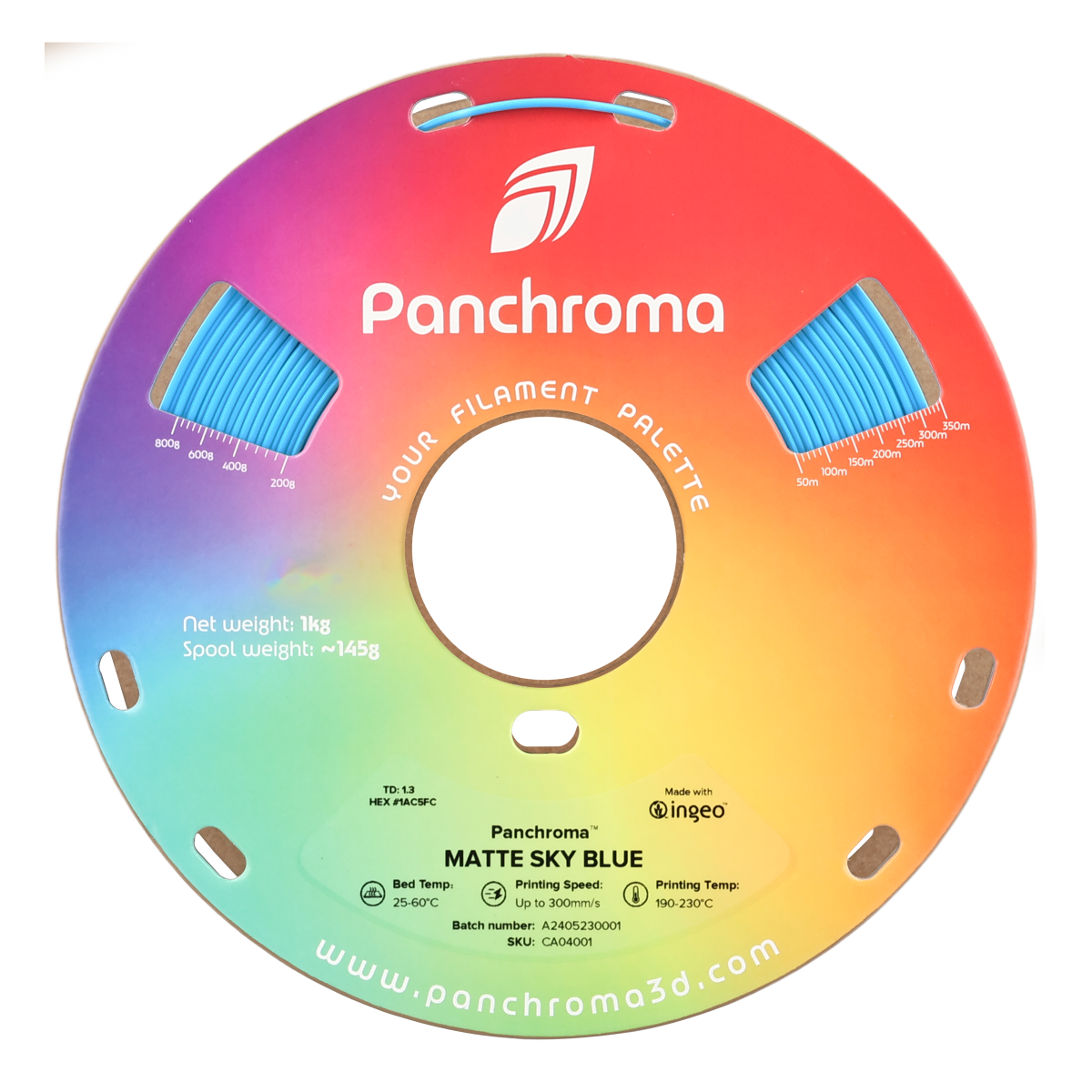 Panchroma™ Matte to nowej generacji filament do druku 3D oparty na bioplastiku, zaprojektowany z myślą o najwyższej łatwości użycia, jakości wydruków, szybkości oraz niezawodności.
