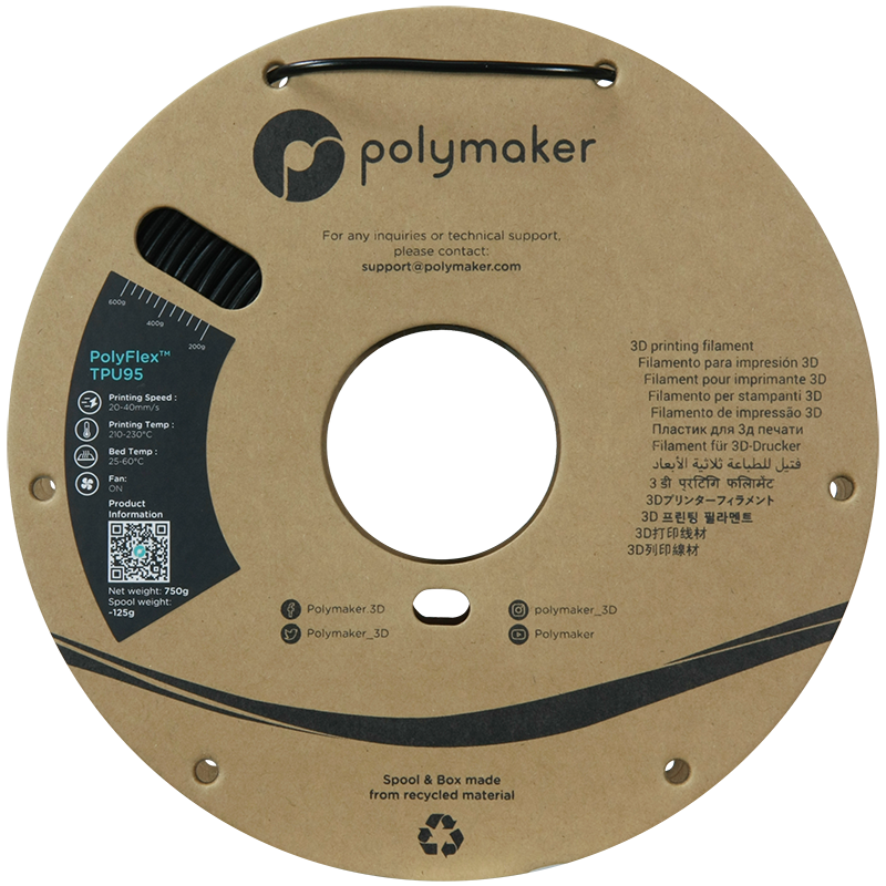 PolyFlex™ TPU95 to wysokiej jakości elastyczny filament 3D na bazie TPU (termoplastyczny poliuretan), specjalnie opracowany do współpracy z większością drukarek desktopowych. Charakteryzuje się twardością Shore’a 95A oraz możliwością rozciągania ponad 3-krotnie w stosunku do pierwotnej długości.