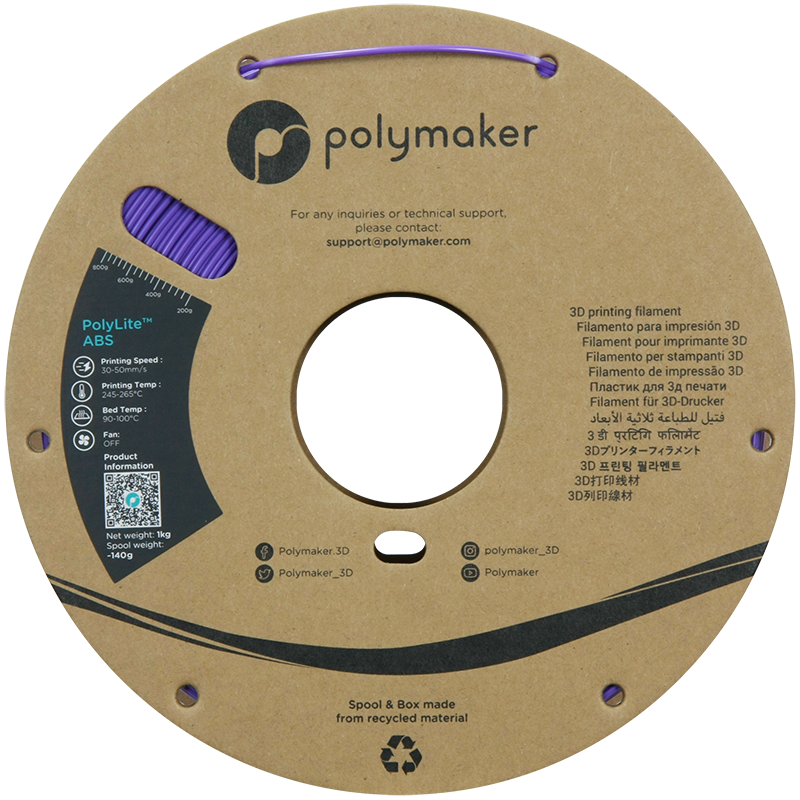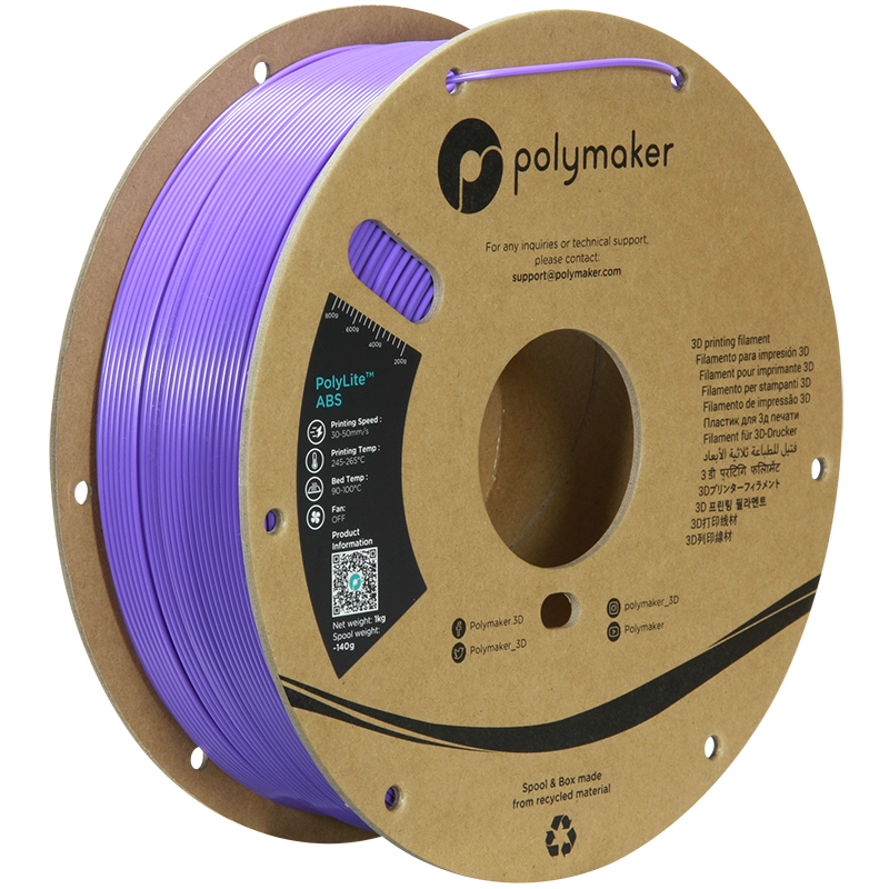 PolyLite™ ABS to filament oparty na specjalnie polimeryzowanej żywicy ABS o znacznie niższej emisji lotnych związków niż tradycyjne tworzywa ABS. Dzięki temu oferuje wysoką jakość wydruku przy znacznie mniejszym zapachu podczas drukowania.
