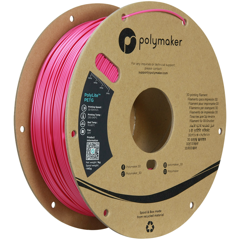 PolyLite™ PETG to przystępny cenowo filament o zrównoważonych właściwościach mechanicznych oraz dużej łatwości drukowania. Jeśli mielibyśmy umieścić filamenty na osi od „łatwe, ale mniej trwałe” do „trudne, ale wytrzymałe”, to PLA byłoby na lewo, ABS na prawo, a PETG – dokładnie pośrodku. To idealny wybór dla użytkowników oczekujących kompromisu między jakością, wytrzymałością i prostotą obsługi.