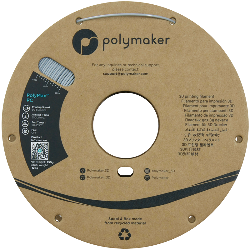 PolyMax™ PC to inżynieryjny filament poliwęglanowy, który łączy w sobie doskonałą wytrzymałość, udarność, odporność na wysokie temperatury oraz wysoką jakość druku. Jest to idealny wybór do szerokiej gamy zastosowań inżynieryjnych i technicznych.